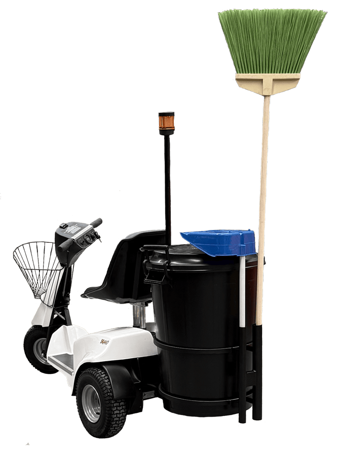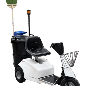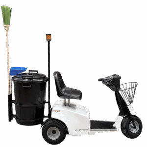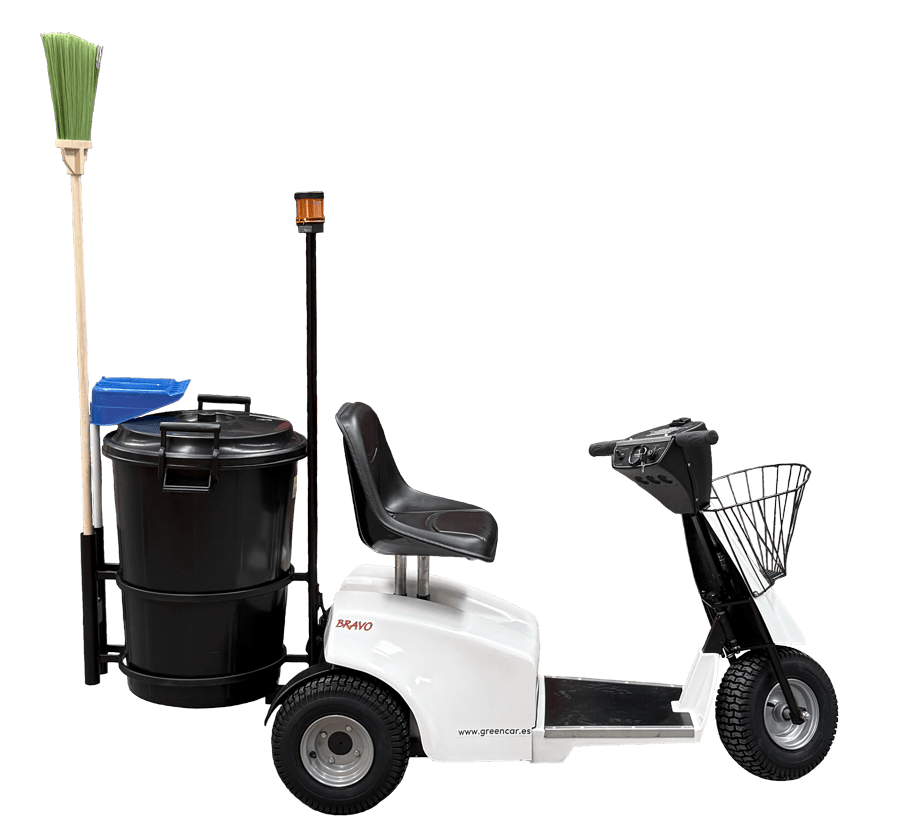 Triciclo eléctrico BRAVO 3 LV, diseñado para ofrecer máxima estabilidad y equilibrio, facilitando un manejo seguro y ágil en cualquier entorno urbano. Incorpora múltiples soportes para herramientas habituales de limpieza viaria.